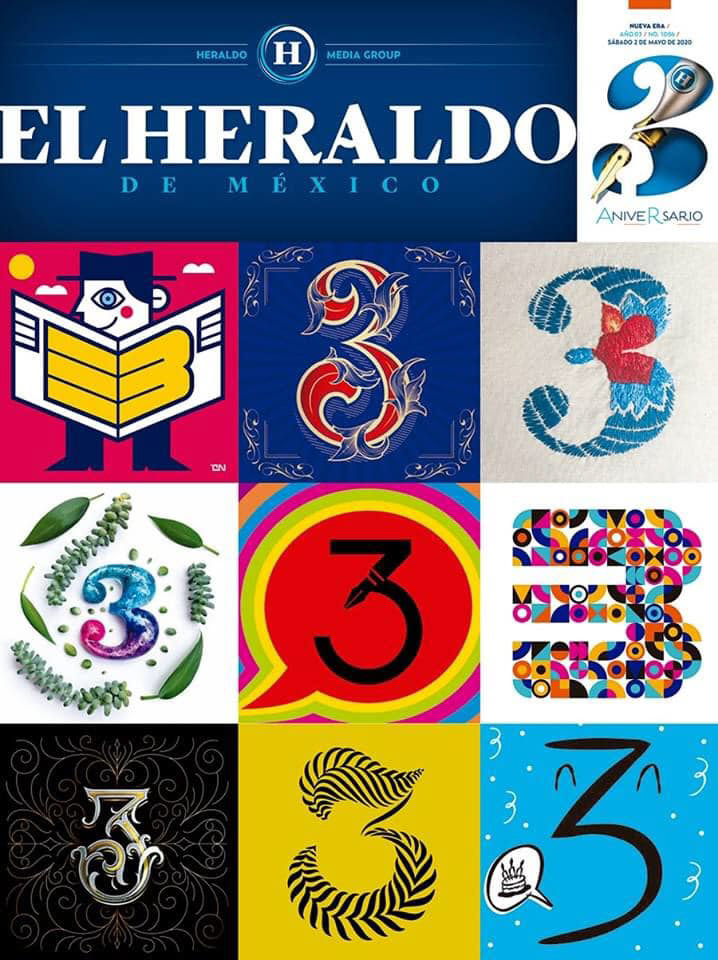 On the third anniversary of the Heraldo de México, we were invited to collaborate with the making of a number three that appeared on the front page of the newspaper. We share the cover and the design.